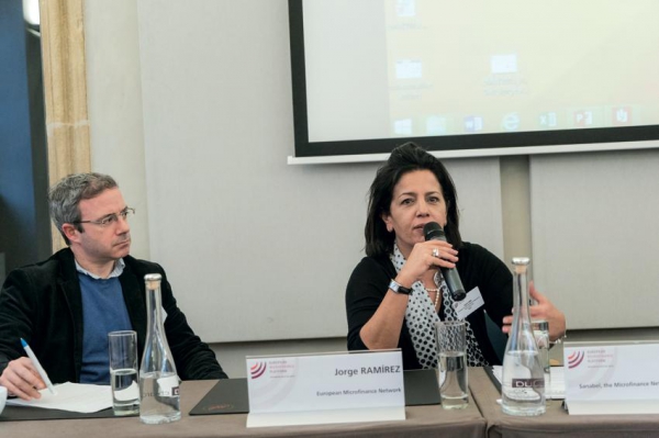 Jorge RAMIREZ of EMN stressed that the work of microfinance cannot be separated from non-financial services, in particular when taking the SDGs into account. He pointed in particular to SDG 1 on ‘no poverty’ and SDG 1.4 mentioning microfinance explicitly and SDG 8 on ‘decent work and economic growth’, referring to access to finance and the capacity of domestic financial institutions. In terms of what networks can contribute, Ramirez points out that they can help tracking the performance of the sector, facilitate capacity building, and advocacy at EU and national levels (in the case of EMN). He continued by articulating the EMN Strategy 2015-20, which has clearly set out to increase impact by 100 percent on the following indicators: delivery, transparency, good governance (referring to the European Code of Good Conduct)2, collaboration with mainstream financial institutions.