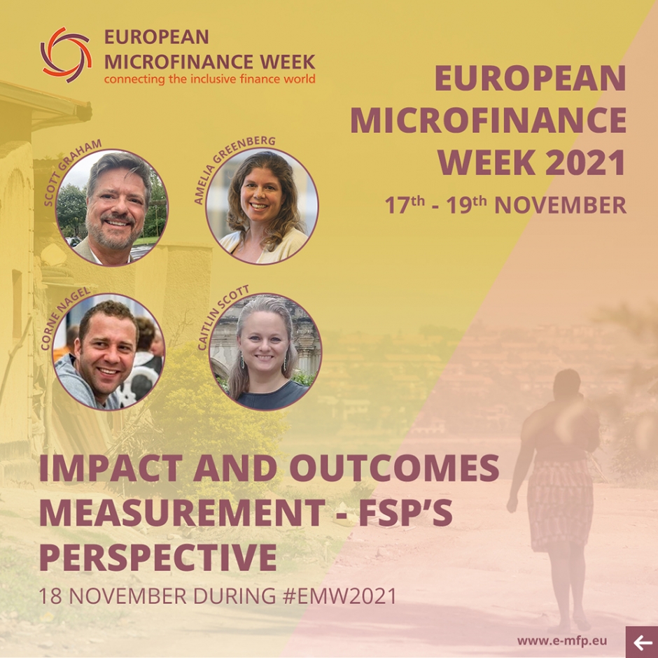 The final question discussed was what is the business case of outcome measurement/management and is there a clear line between commercial information and social impact information? Graham recommended separating financial health and poverty status. Age for example is a more important factor for financial health than poverty. Another example related to Covid is that early in the pandemic people were hesitant to take more debt, having more concern about restructuring. For FINCA this meant that they didn’t need to rush to get out in the market to offer loans but to focus more on restructuring as a service provider. Nagel continued by explaining that 4G Capital makes use of agents to constantly interact with their clients to better understand the why behind data. For example, the repaying time shifting from 1 to 2 weeks can be an indicator. In her response, Scott advised using data continuously to learn along the way and to make it an actionable cycle. For example, quality of life measurement helps Friendship Bridge to make findings more actionable.